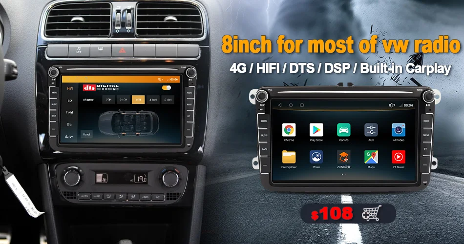 Camecho 2 din Android 8,1 для VWVolkswagenGolfPoloTiguanPassatb7b6l...