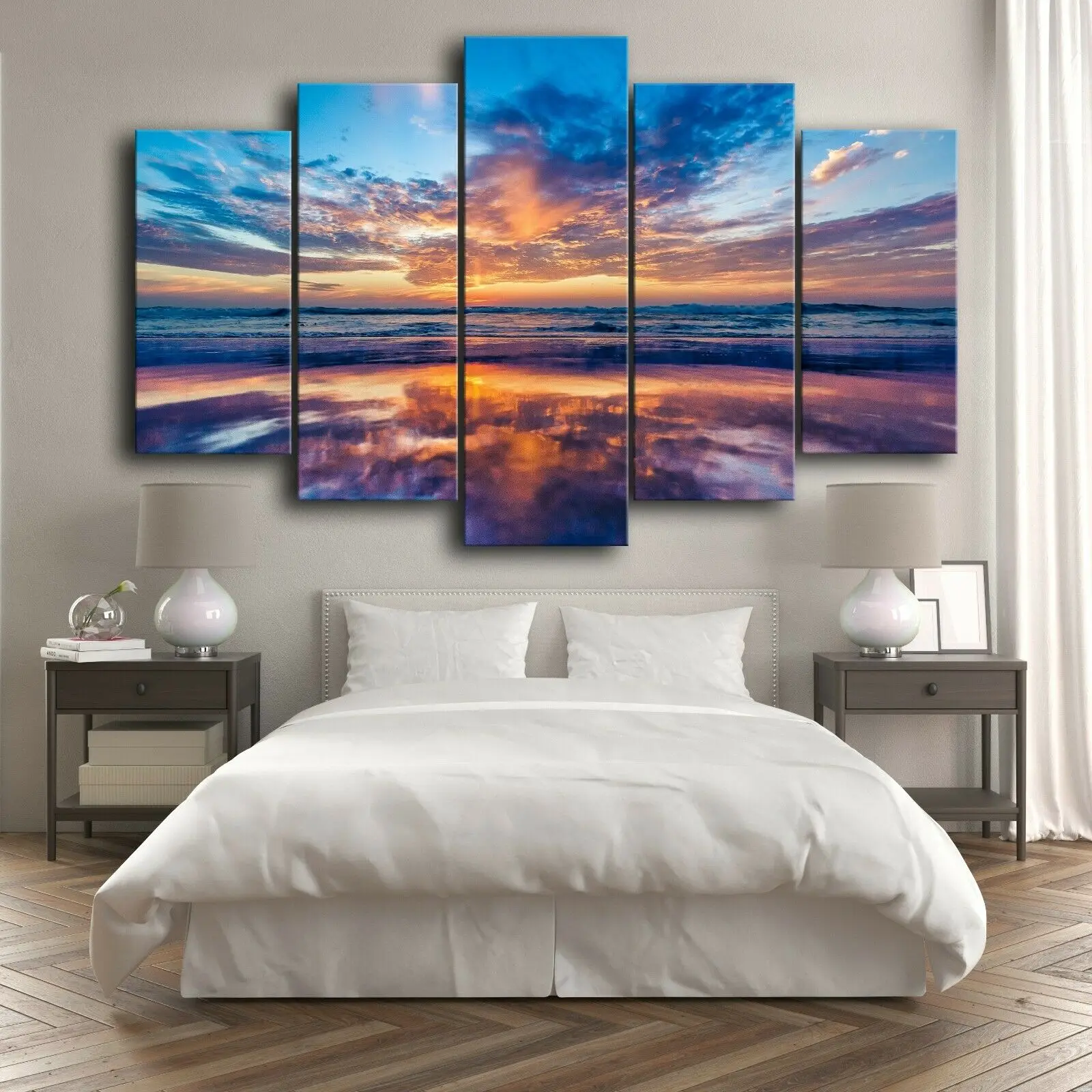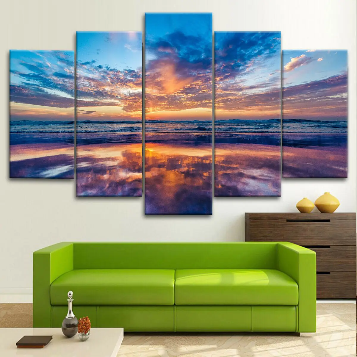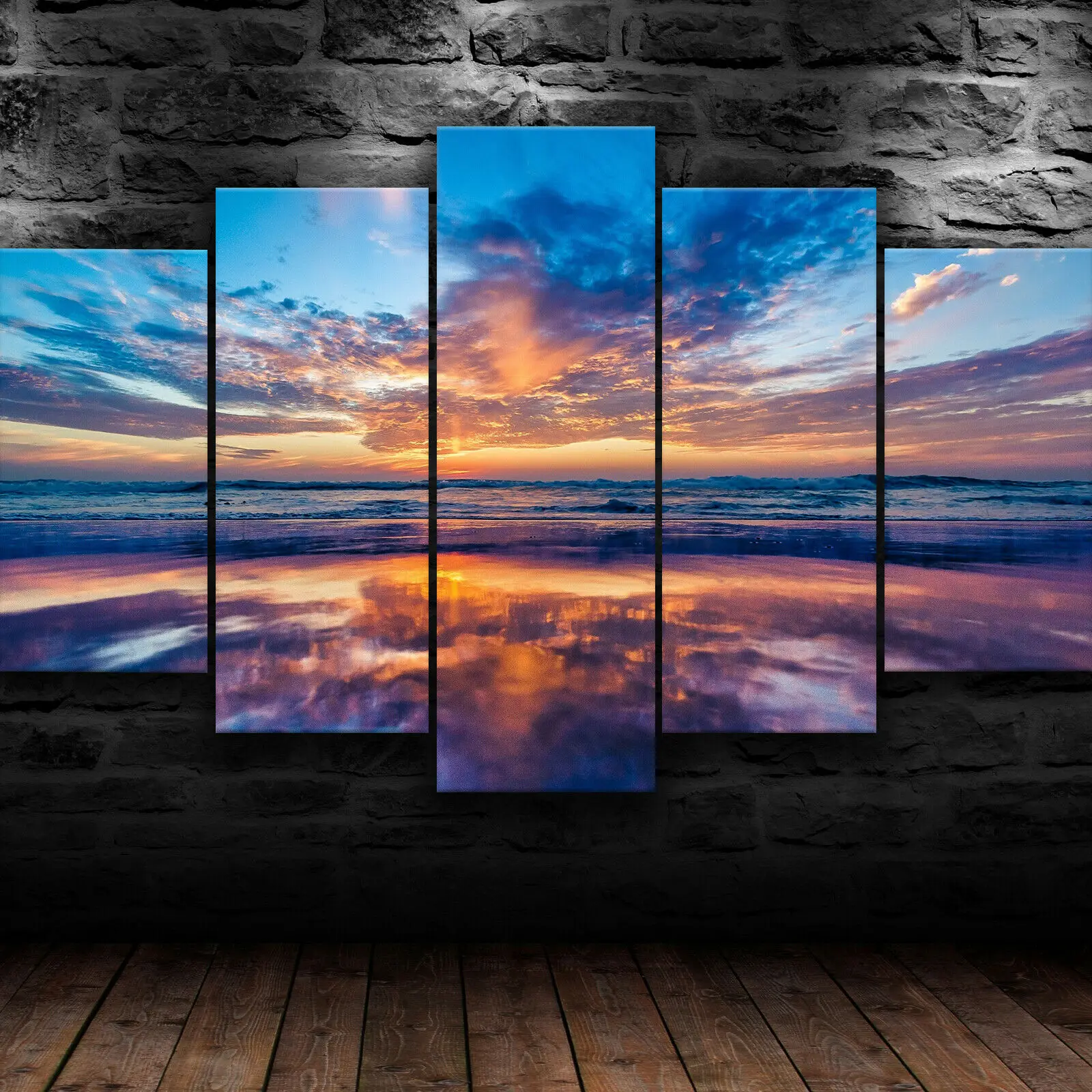 Море сторона закат Horizon холст стена искусство абстрактная печать домашний декор плакаты, постеры печатные изображения HD 5 панель без рамки 5 штук