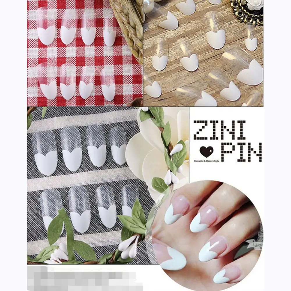 24 шт.кор. белые накладные ногти в форме сердца для французского маникюра съемные миндальные искусственные накладные ногти полное покрытие накладные ногти нажимайте на ногти