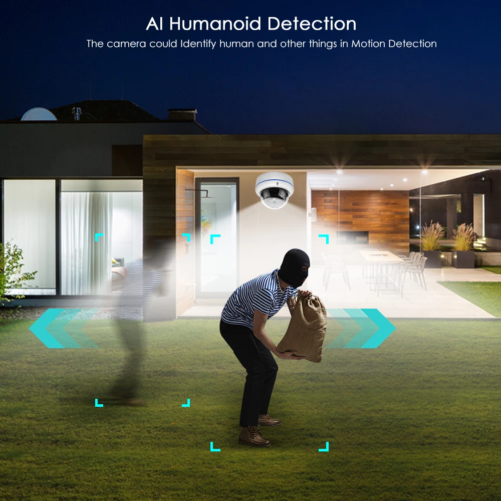 4K 8MP 4MP HD H.265 POE IP-камера Аудио AI Обнаружение гуманоидов 1080P Антивандальная купольная камера видеонаблюдения ИК ночного видения