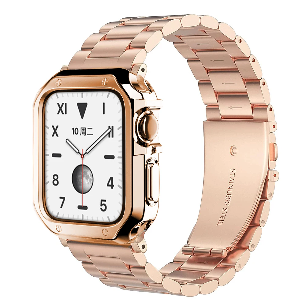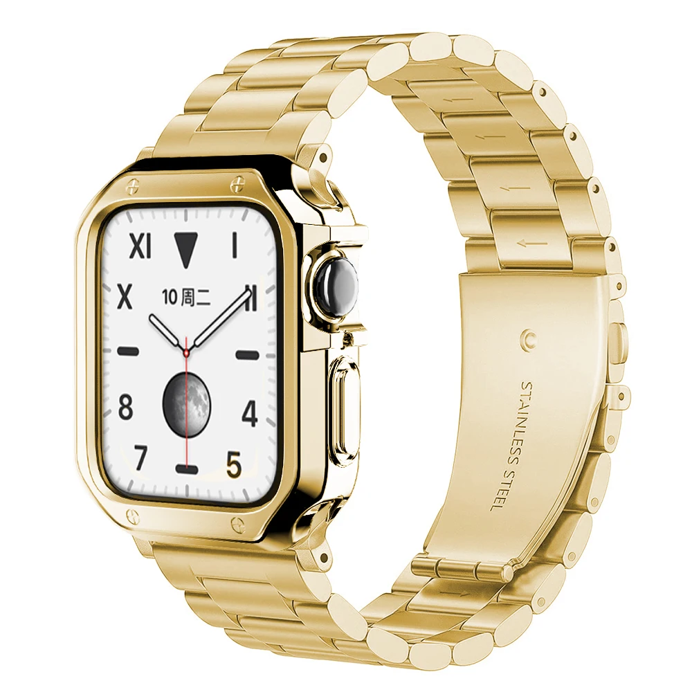 Чехол из поликарбоната и ремешок из нержавеющей стали для Apple Watch Band 45 мм 41 мм 40 мм 44 мм 38 мм 42 мм, ремешок для часов iWatch series 5 4 3 SE 6 7