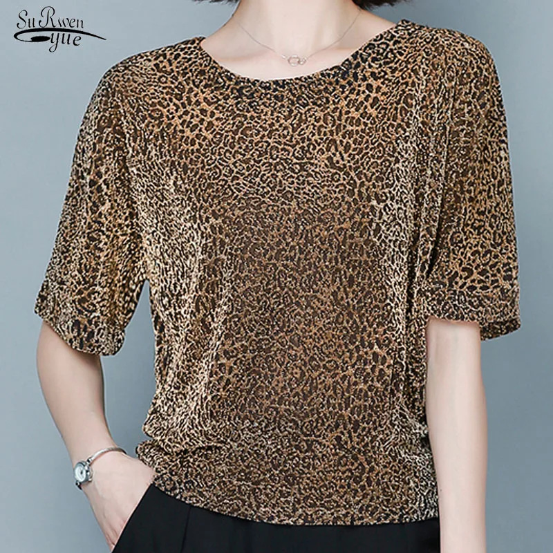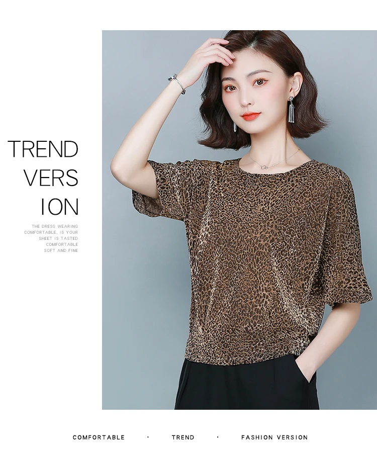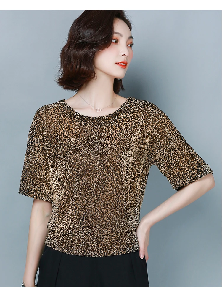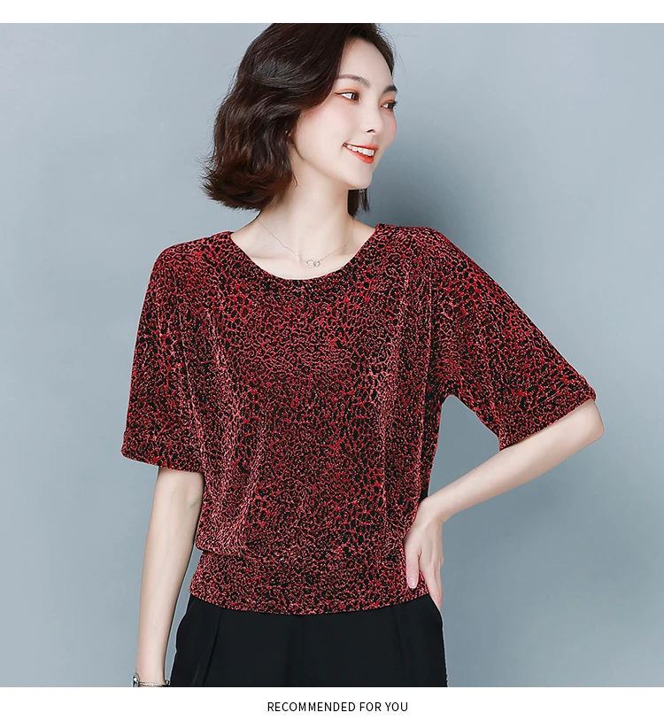 Блузка Женская Блестящая с коротким рукавом, красная