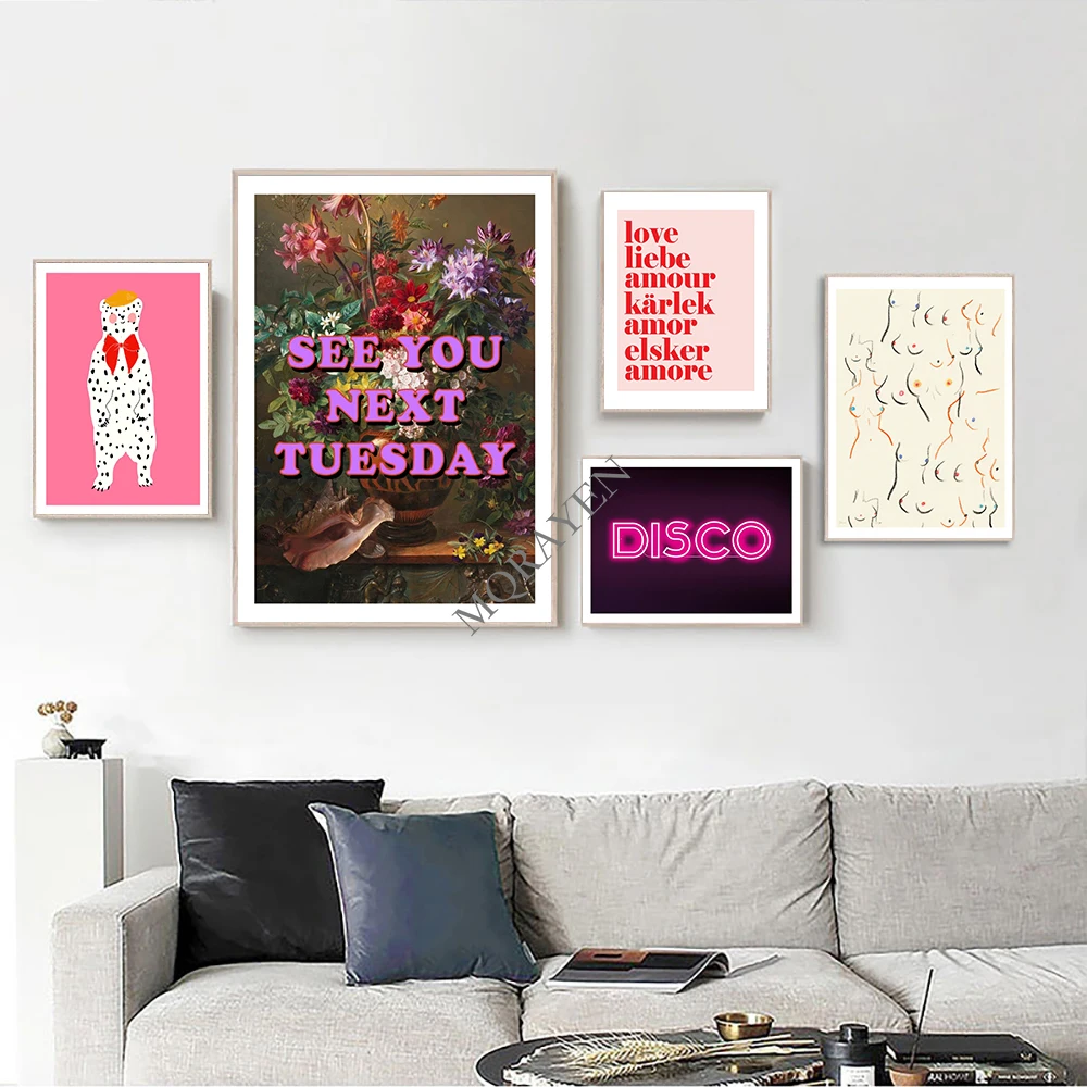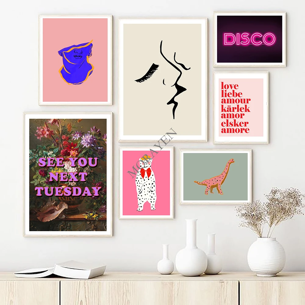 Скандинавская абстрактная фотография с блестками, поцелуй, грудь, холст, живопись, искусство, греческая статуя, розовая буква, диско, настенные картины для украшения дома