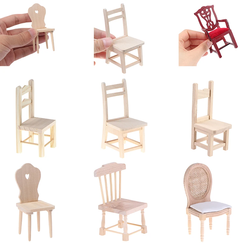 Деревянный Маленький стул 1:12, миниатюрная мебель для кукольного д...