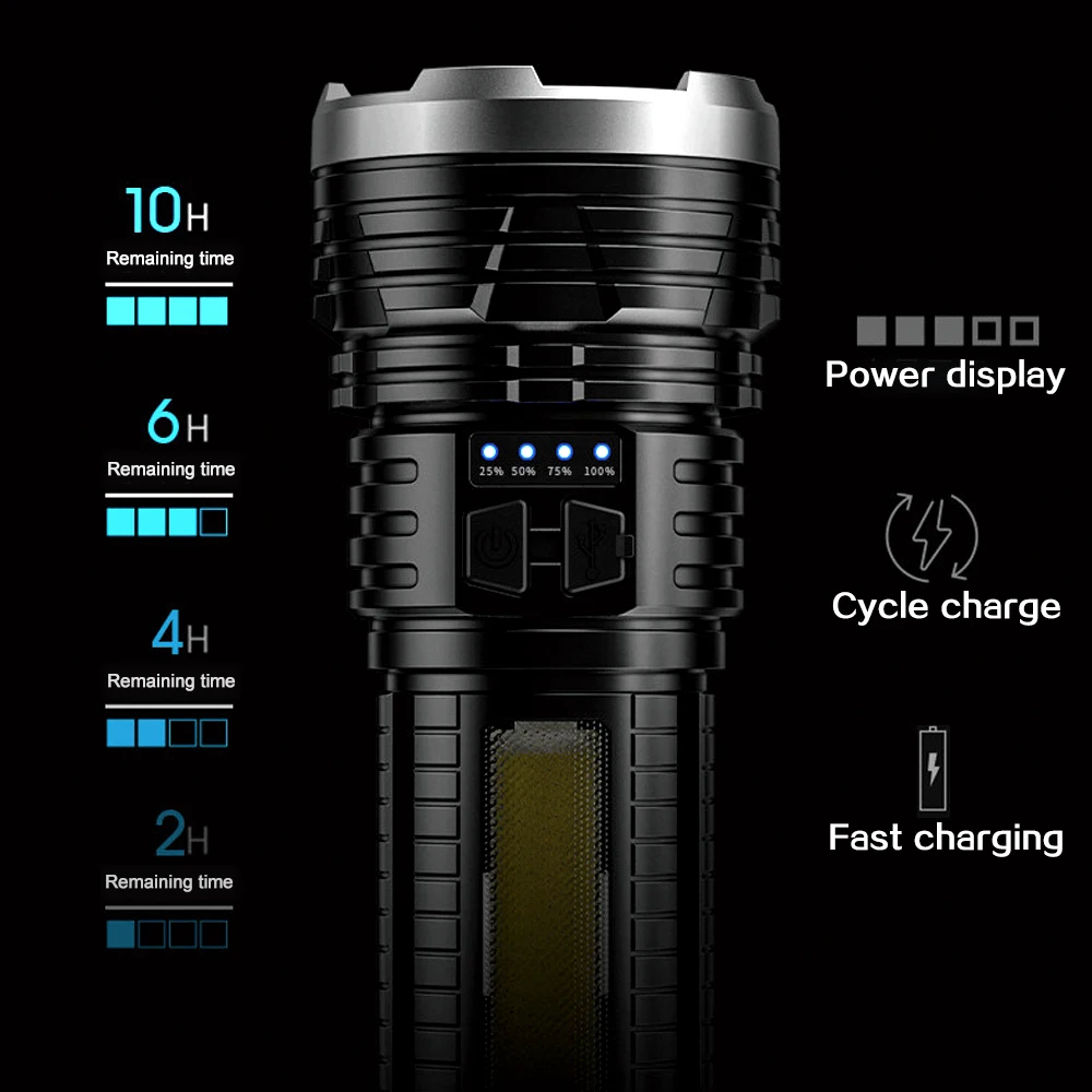 Светодиодный фонарик с большим прожектором, Перезаряжаемый USB фона...
