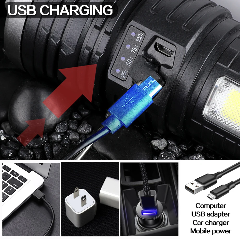 Светодиодный фонарь T6 + COB, уличный фонарь с USB-зарядкой и босветильник индикатором мощности