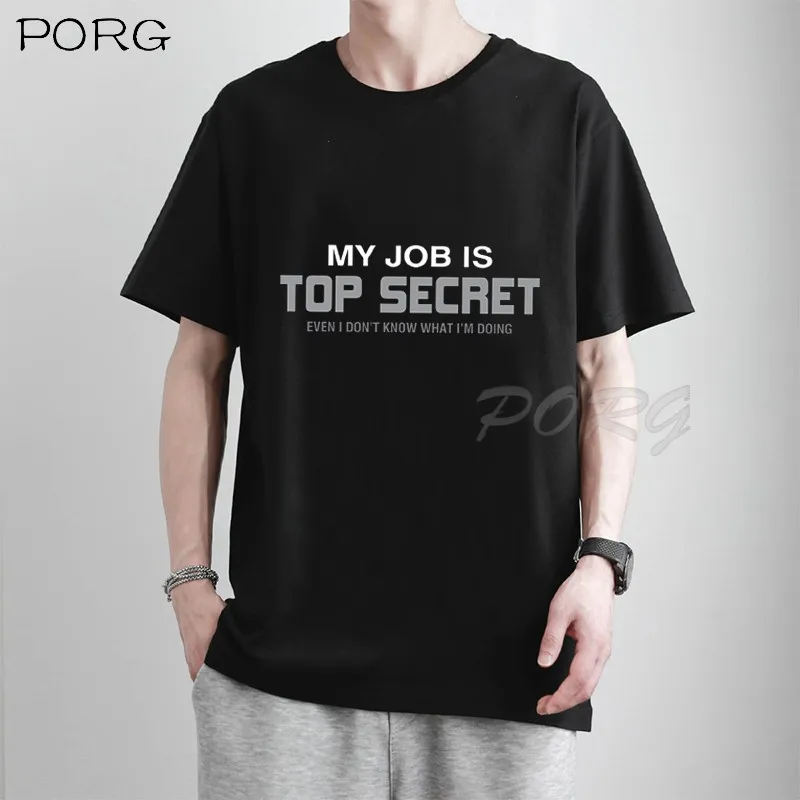 Женскаямужская футболка с принтом MY work IS TOP SECRET, черная Винтажная футболка из хлопка с коротким рукавом, модель 2022, 2022