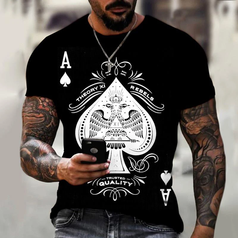 Покерная забавная футболка с коротким рукавом для мужчин и женщин, крутые футболки с круглым вырезом, модная Уличная Повседневная 3D печать, лето 2022