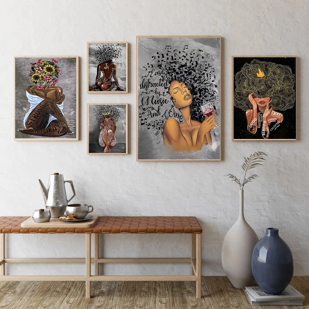 Художественный плакат Африканской черной женщины, афро, черная девушка, королева, мощность, холст, живопись, Скандинавская абстрактная картина, украшение для дома, девушка, спальня