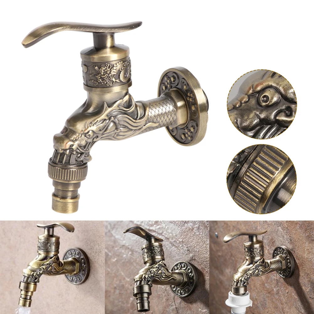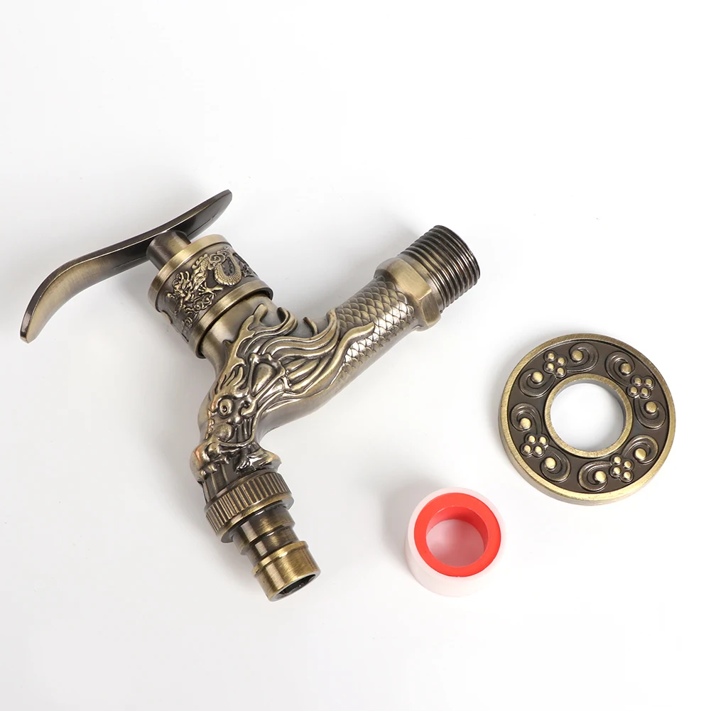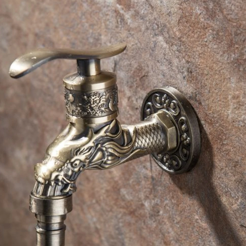 Резной настенный кран из цинкового сплава в старинном стиле, декоративный тонкий кран для стиральной машины