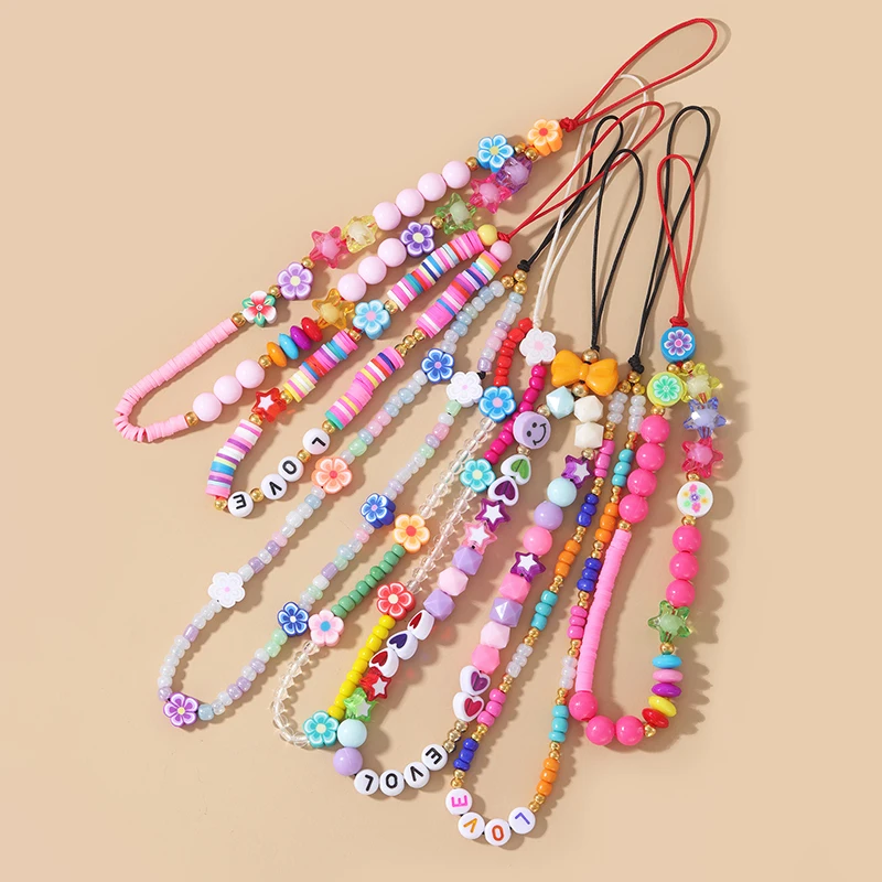 YUOKIAA красочная богемная телефонная цепочка ремешок из глины с бусинами и улыбающимися бусинами Подвеска для мобильного телефона для женщин Очаровательная цепочка для телефона с защитой от потери
