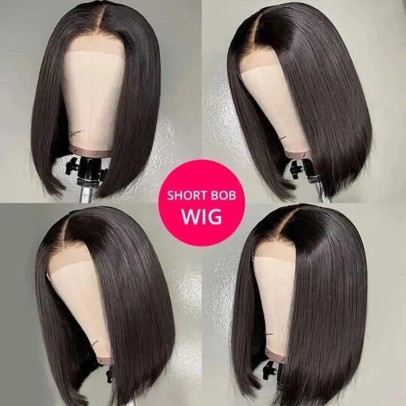 Прямые парики из человеческих волос Боб 5X5, парик с короткой засте...