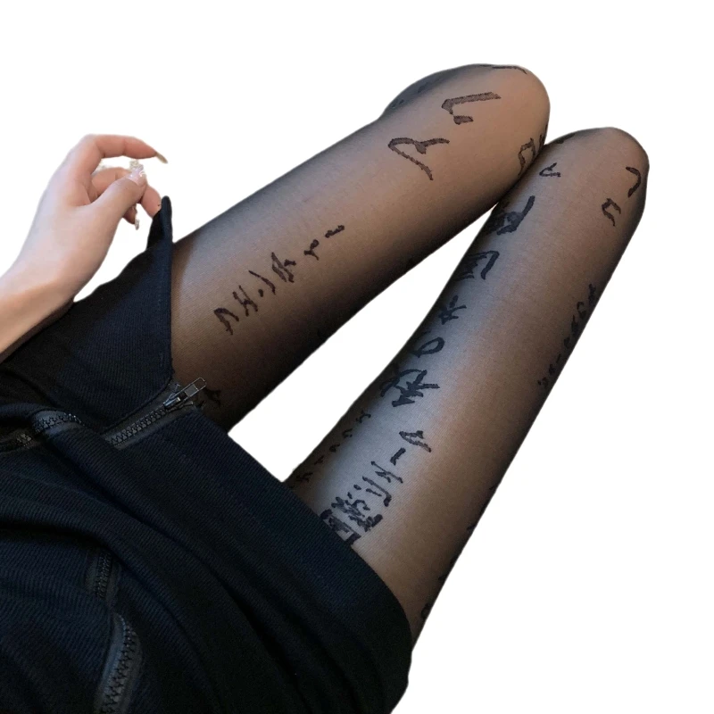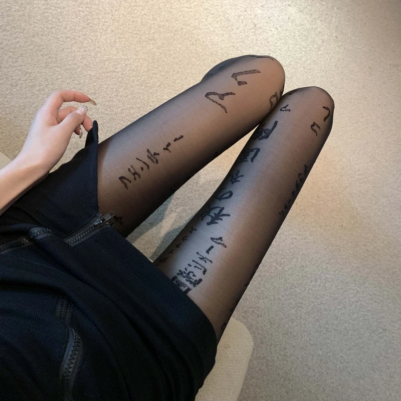 Женские стильные тонкие черные носки, мягкие прозрачные колготки с надписью, новинка 2022