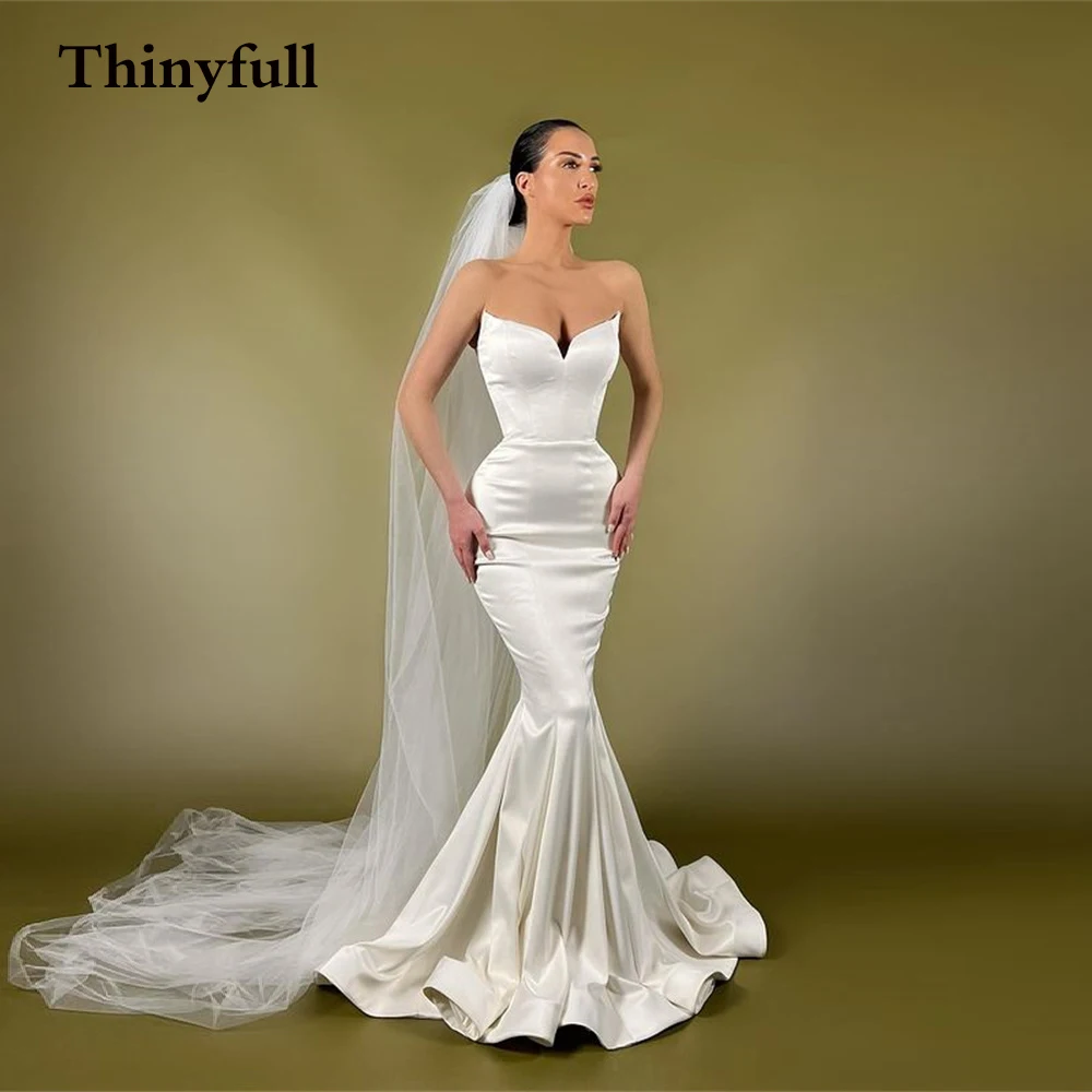 Простые Длинные свадебные платья Thinyfull с юбкой-годе, пляжные свадебные платья в стиле бохо, свадебные платья с бантом для милой невесты, свадебные вечерние платья принцессы, платье