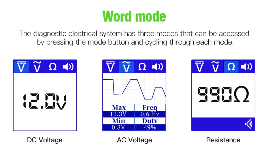 1.Voltage & Polarity Testing-Determine DC/AC Voltage and Postive/Negative quickly.