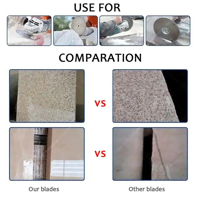 Турбо алмазное лезвие дисковая фарфоровая плитка керамические гранитные мраморные режущие лезвия для углового шлифовального станка алмазная пила Лезвие 115 ммОсобенности:Высококачественный материалАлмазная пила изготовлена из высококачественных промышленных алмазов, которые выдерживают тысячи раз резки без деформации и повреждения, очень прочные и долговечные.Быстрая и резкая резкаОн может обеспечить быструю, точную, гладкую и чиповую обработку для вас.Восток для использованияПросто Открутите винтовую ручку углового шлифовального станка, просто поместите лезвие на него и затяните винтовую ручку гаечным ключом и используйте его сразу. Не требуется более сложного инструмента.Области примененияЭта алмазная пила совместима с сухой или влажной резкой и поддерживает большинство мраморных машин, станков для резки, угловых шлифовальных машин и т. д. Его можно широко использовать для резки, шлифования или полировки гранита, мрамора, бетона, асфальта, огнеупорного, фарфора и стекла.Характеристики:Тип: алмазная пилаМатериал: бриллиантЦвет: синийМаксимальная линейная скорость: 4000 rmpТвердость: 100Толщина 1,0 мм/0,04”Внутренний диаметр: 22,23 мм/0,88 дюймаВнешний диаметр: 115 мм/4,53 дюймаВес нетто: 106 гУпаковка:1 * алмазная пила