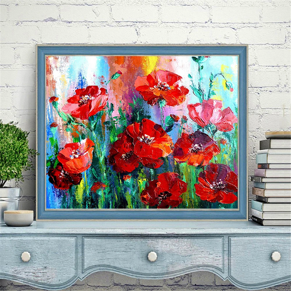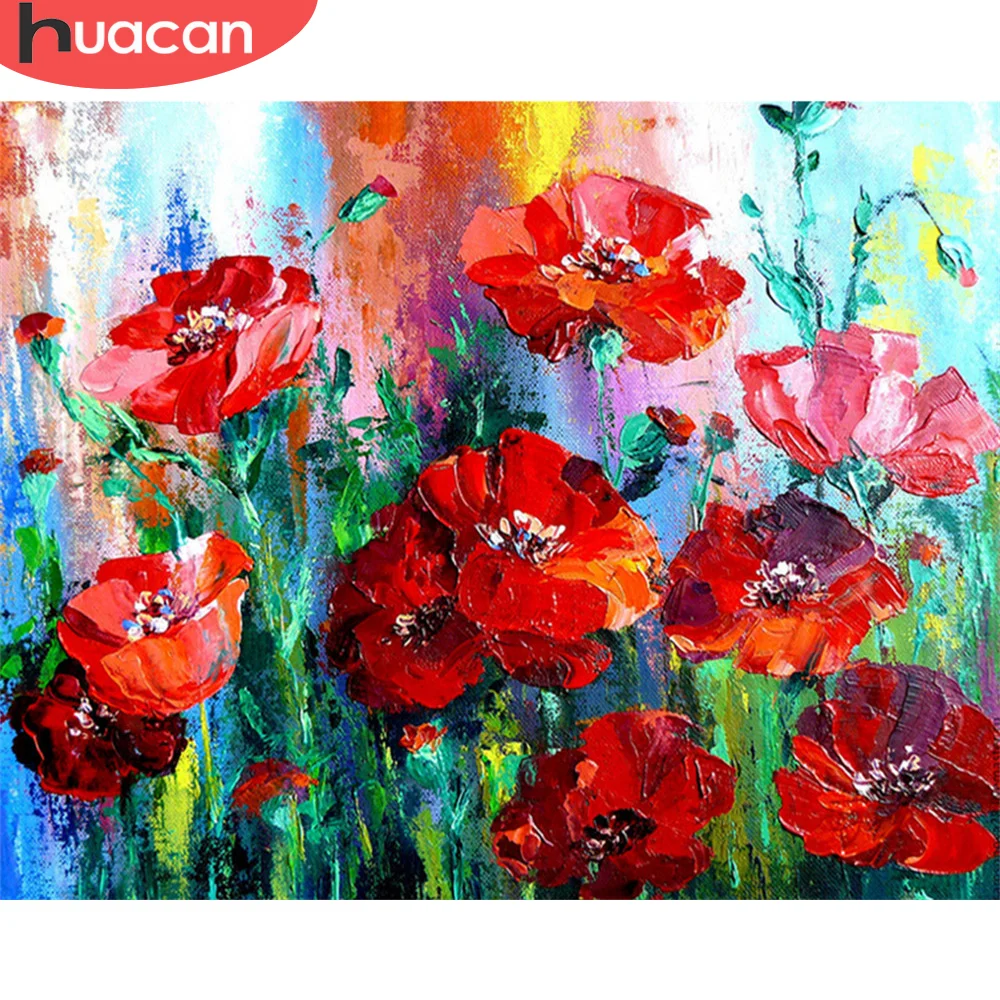 HUACAN живопись маслом по номерам красный цветок стены искусства уникальный подарок DIY рамка Раскраска по номерам Поппи акриловый холст для гостиной icon star icon star icon star icon star icon star