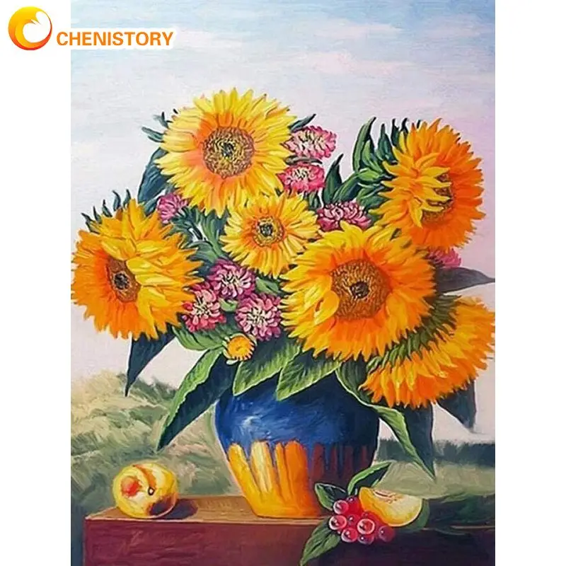 Картина из страз CHENISTORY 5d сделай сам, полноразмернаякруглая вышивка в виде подсолнуха в вазе, мозаика для стен, домашний декор, поделки