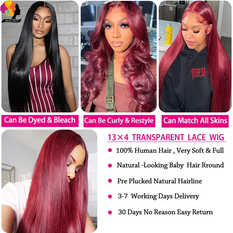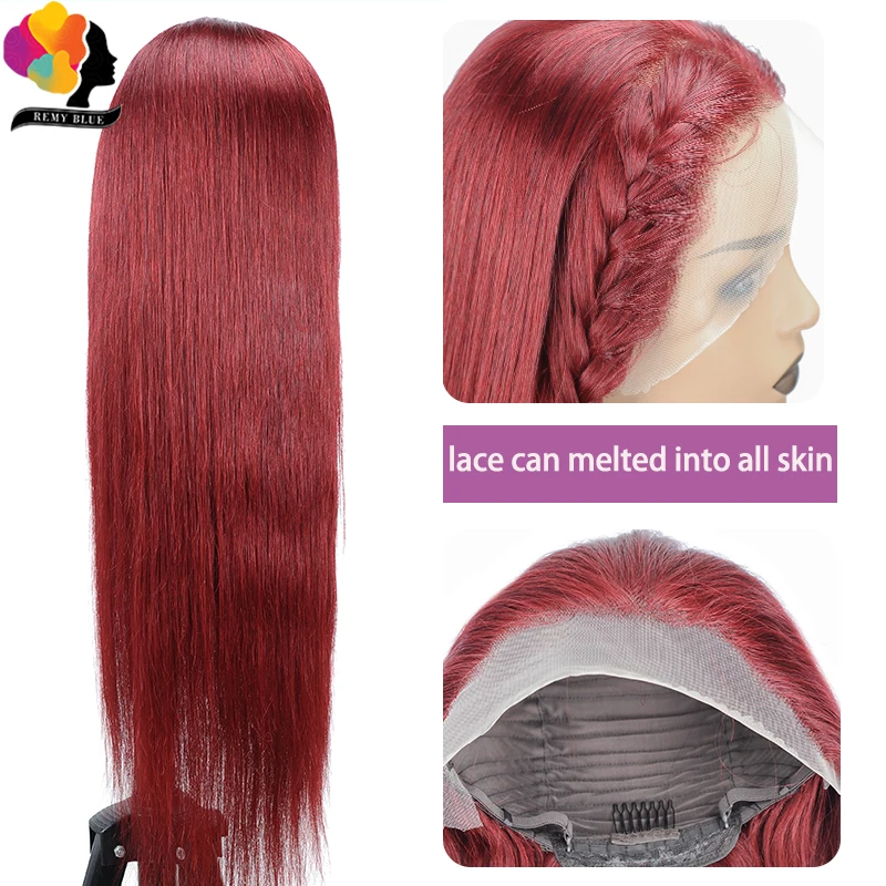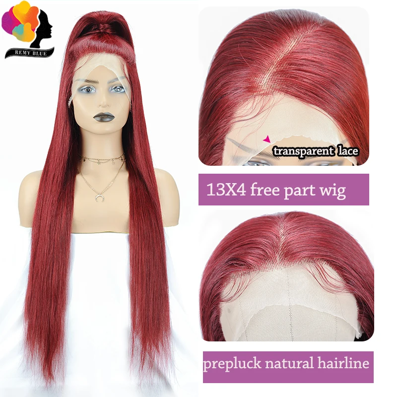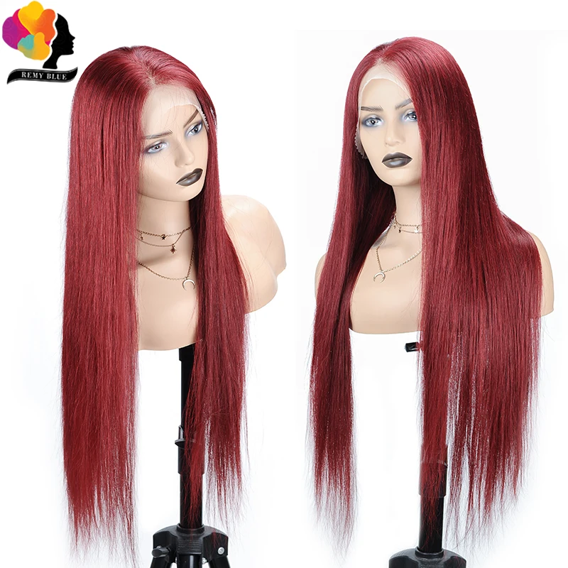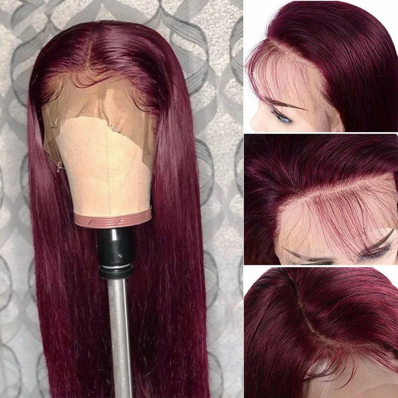 99J бордовый кружевной передний парик 13 4, красный кружевной передний парик из человеческих волос, бразильские зеркальные кружевные парики, предварительно выщипанные Детские волосы