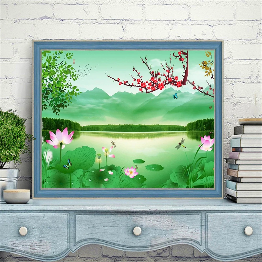 HUACAN картина по номеру озеро пейзаж акриловый холст для украшения краски по номеру цветок дерево настенное Искусство DIY рамка уникальный подарок
