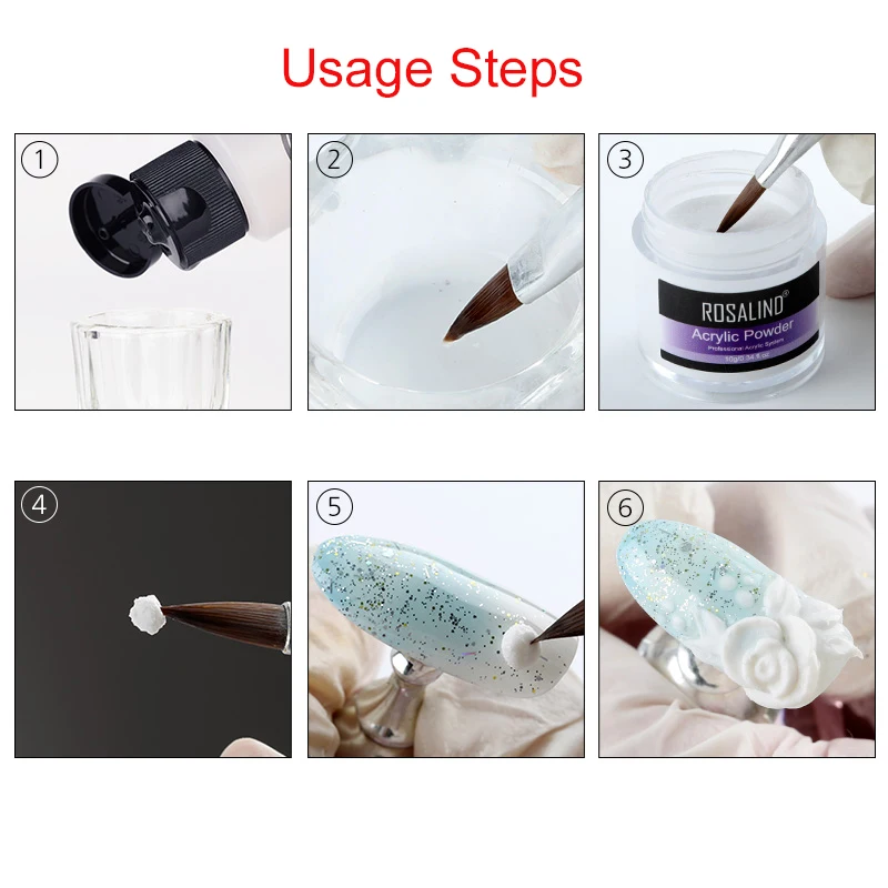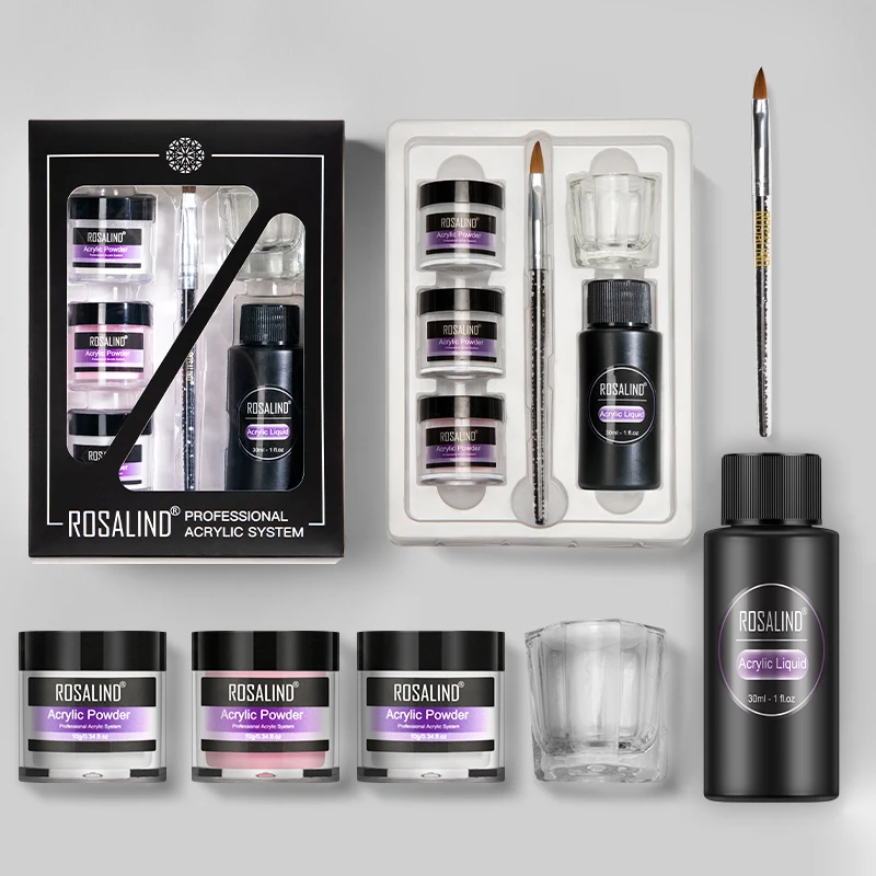 Набор акриловых порошков для ногтей ROSALIND, белый, прозрачный, розовый дизайн ногтей для кристаллов, резной цветок, набор акриловых жидких порошков для маникюра