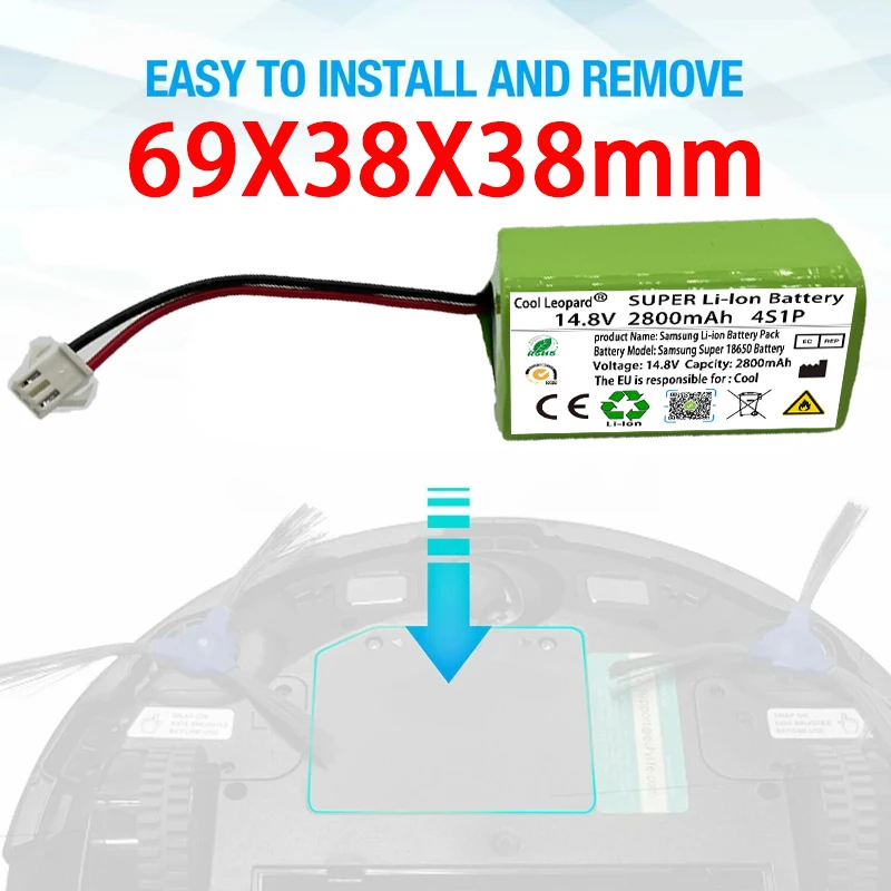 14,4 В, 2800 мАч, литий-ионный Geen geheugen effecten. CE, FCC, PSE, RoHS Veilig Gecertificeerd, je niet zorgen te maken over de batterij beschadigen de machine. 2.8Ah hoge capaciteit laatste langer dan 2.6Ah, volledige lading kan duren ongeveer 100-180mins. De specifieke tijd varieert volgens de machine model en leeftijd, meest van die laatste voor 2 uur.
