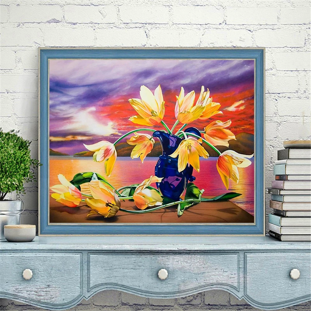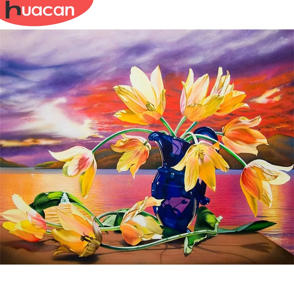 HUACAN живопись по номерам Лилия стены искусства уникальный подарок DIY рамка окраска по номерам желтый цветок акриловый холст для гостиной icon star icon star icon star icon star icon star