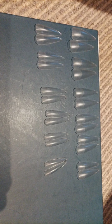Я бы предпочел, чтобы он был в коробке sui, отделял каждый размер ногтя, потому что это не практично, чтобы он отправил все очки в небольшой полиэтиленовый пакет. В противном случае это ногти хорошего качества