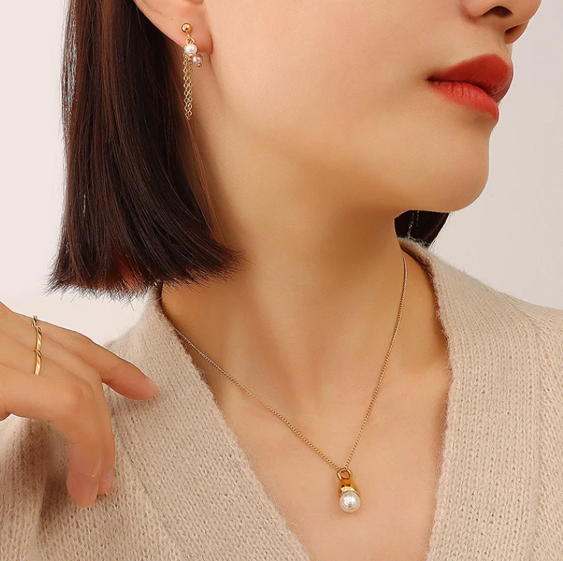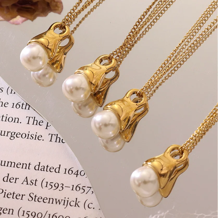 Ожерелье-чокер из нержавеющей стали с жемчугом 18 К