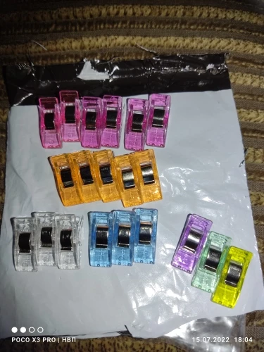 Просто супер! Очень удобно. Раньше не пользовалась. Все прищепки качественные. Разноцветные. Иногда булавками не удобно прикалывать(например толстую ткань). Прищепки как раз для этого. Дочка сначала подумала, что это заколки)))