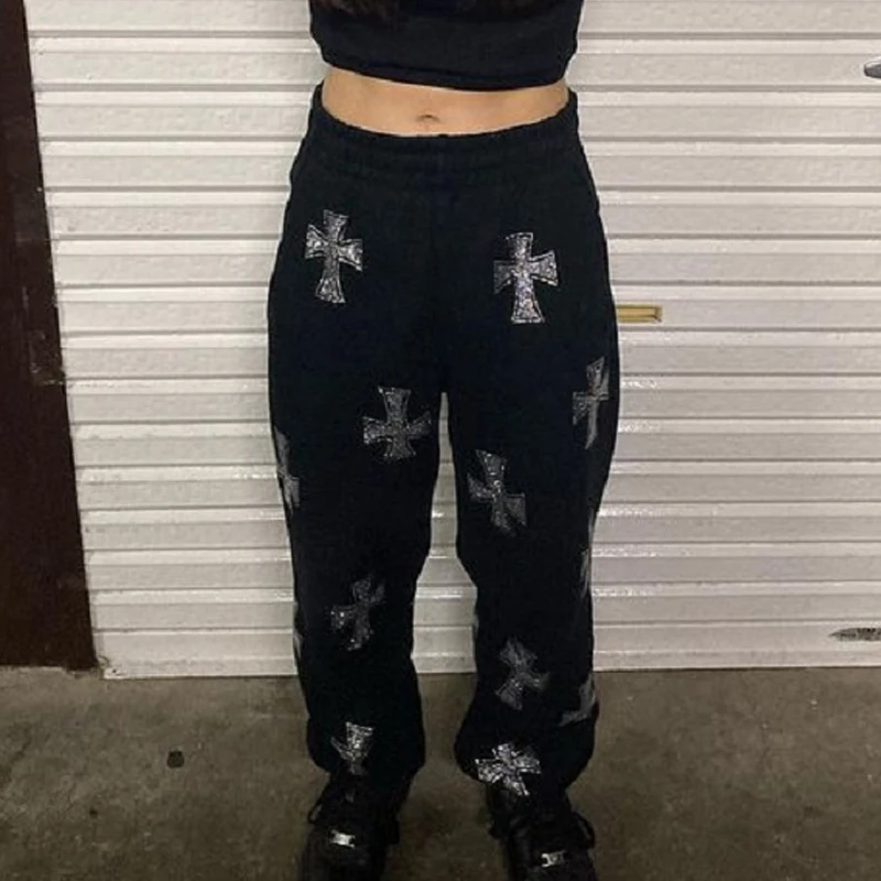 Стразы перекрестные спортивные брюки Cyber Y2k гранж джоггеры Высок...