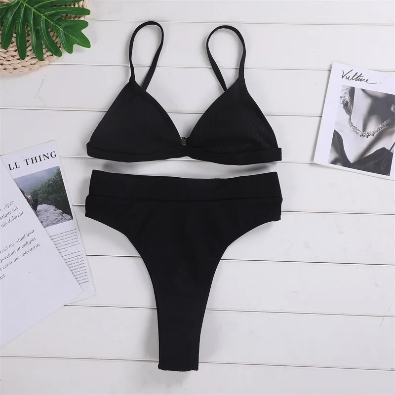 Купальник-бикини в рубчик, новинка 2022, купальник с высокой талией, женское сексуальное бикини с V-образным вырезом, женский черный комплект бикини