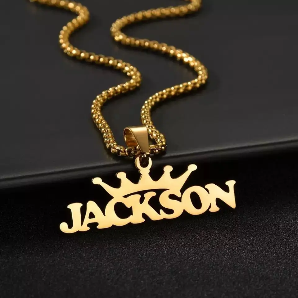 Новинка, индивидуальные ожерелья Atoztide, персонализированная толстая цепь с именами короны, жирная большая буква из нержавеющей стали для мужчин, ювелирные изделия с подвеской
