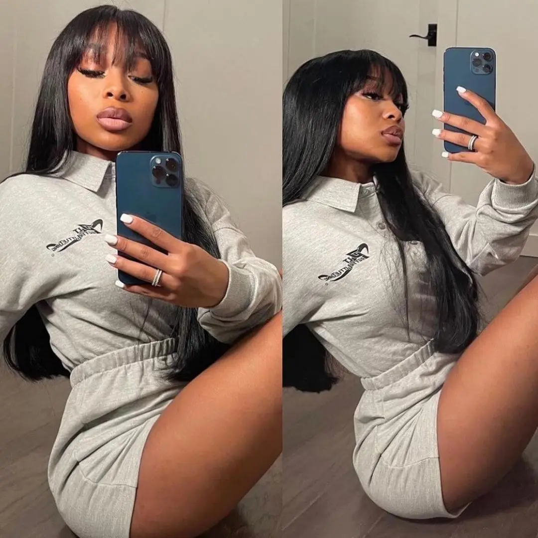 Материал: 100% человеческие волосыСтиль: парики с бахромойДлина: 10 ~ 32 дюймаЦвет: Естественный цвет может быть окрашен и отбеленСпособ изготовления: полная машинаПлотность: 150% ПлотностьРазмер шапки: средний размерВремя доставки: отправка в течение 24 часов в будние дни