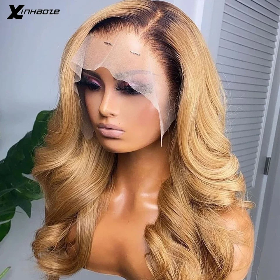 Парик Омбре медовый блонд #1b27 13x4, парик на сетке спереди блонд 4x4, парик с волнистой застежкой, парик из человеческих волос с эффектом омбре для черных женщин