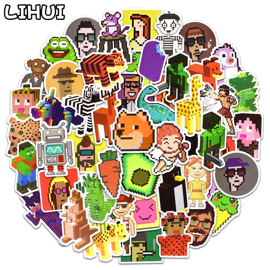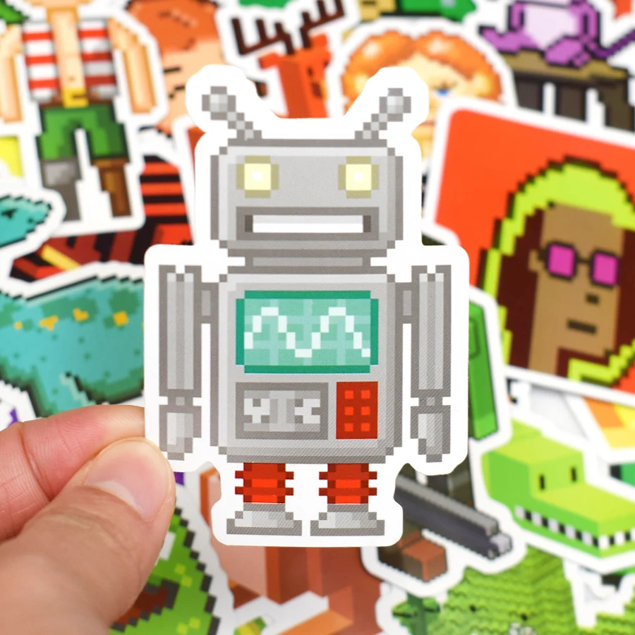 Посылка включает:10/30/50 шт Водонепроницаемый NFT профиль фотографии ПФП Пиксельная игра мультфильм наклейки для ноутбука телефона автомобиля. Не повторяется.