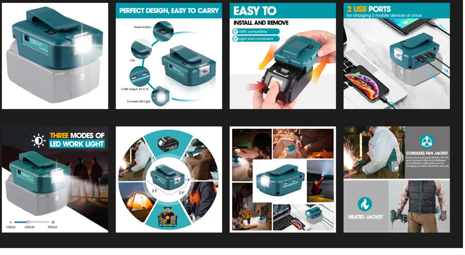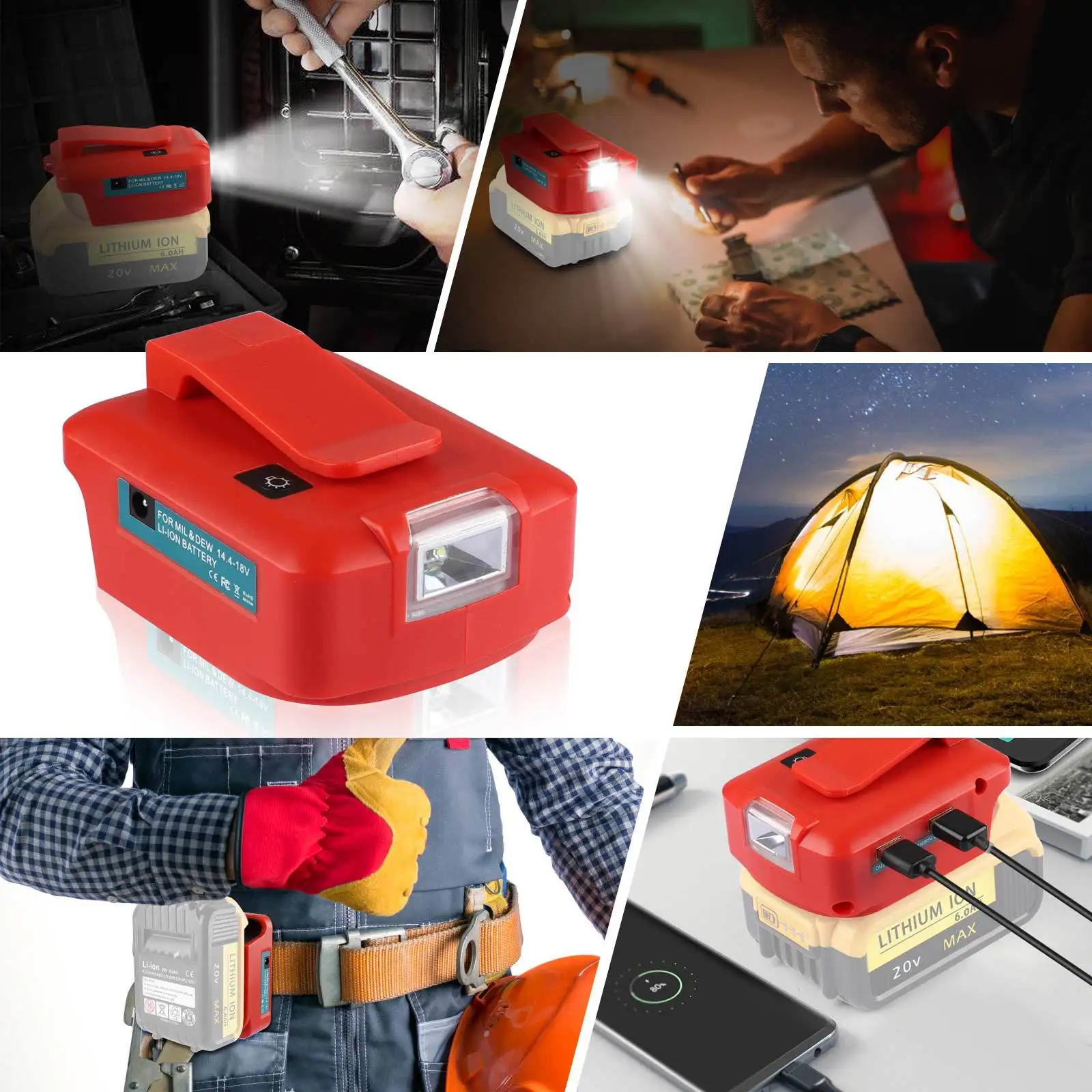 14,4 V/18V литий-ионным Батарея Dual USB Порты и разъёмы с светодиодный светильник Точечный светильник для съемки вне помещения с системой светильник для Makita/Bosch/Милуоки/BLACK&DECKER батареи