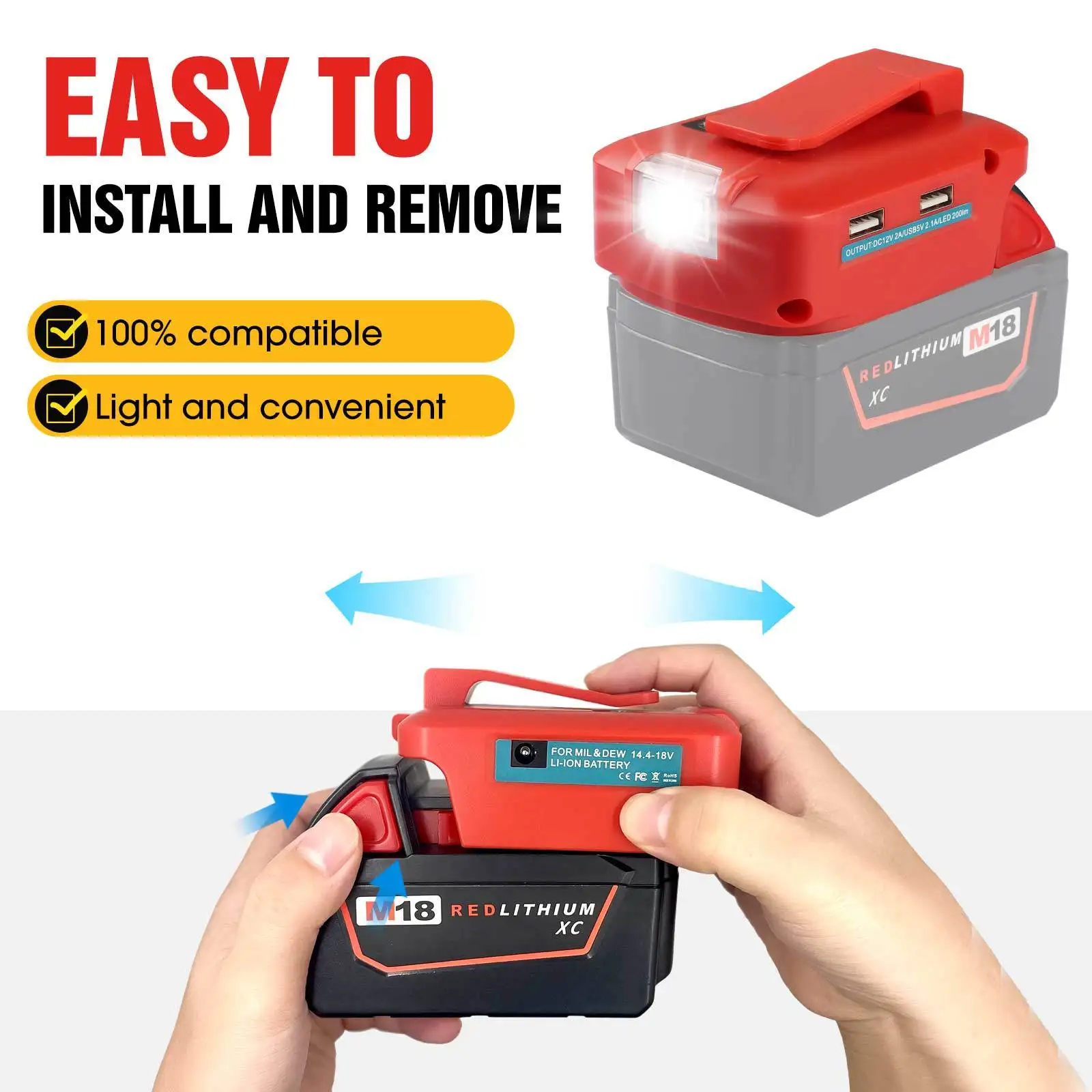 Function 3USB converter for Milwaukee 14.4V 18V battery