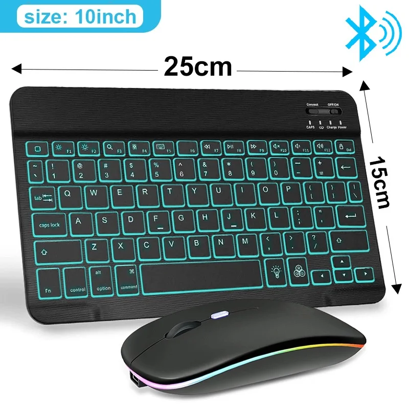 【 7 подсветкой цвета KEYBOARD】 нескольких устройств клавиатура имеет 7 различных светодиодный режима освещения, 2 уровней яркости подсветки. Усовершенствованная технология bluetooth 5,1 обеспечивает одновременное соединение кабеля и легко подключается 【идеальный размер и ультратонкий 】 Эта компактная и сверхтонкая клавиатура с тонким профилем может облегчить переноску и перемещение. Модный и свежий внешний вид может принести счастливое настроение 【стильная беспроводная мышь RGB 】 компьютерная мышь поставляется с 2 режимами подключения (BT5.0 + USB) и около 10 эффектов подсветки, c 3 DPI регулируемые уровни (800/1000/1600) позволяет получить более точное управление, отслеживать более плавный 【перезаряжаемый и QUITE】 со встроенным аккумулятором, И клавиатура, и мышь можно заряжать с помощью перезаряжаемого кабеля. Удобный набор текста, бесшумный щелчок, даже если вы работаете ночью, это не повлияет на отдых вашей семьи, заставит вас сконцентрироваться на своей работе 【универсальная Совместимость 】 Широкая совместимость с Mac OS, iPad OS, система iOS, Android, Windows XP / 7 / 8 /10. Хорошо работает с настольными компьютерами/ПК/ноутбуками/компьютером/iPad / iPhone/android-телефонами, такими как Samsung, Huawei,Iphone
