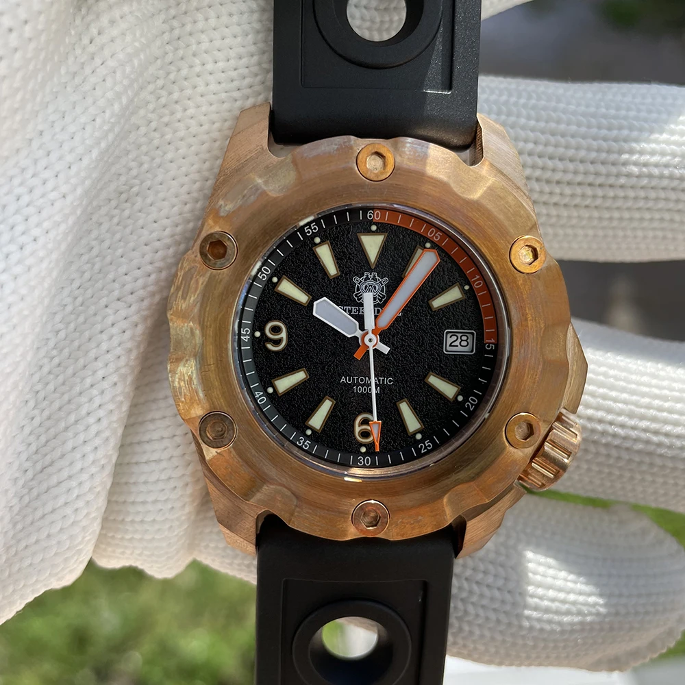 Часы STEELDIVE Мужские механические под старину, под бронзу, 45 мм, 1942 м