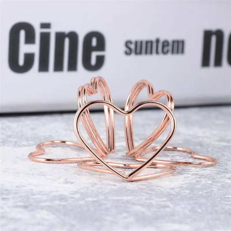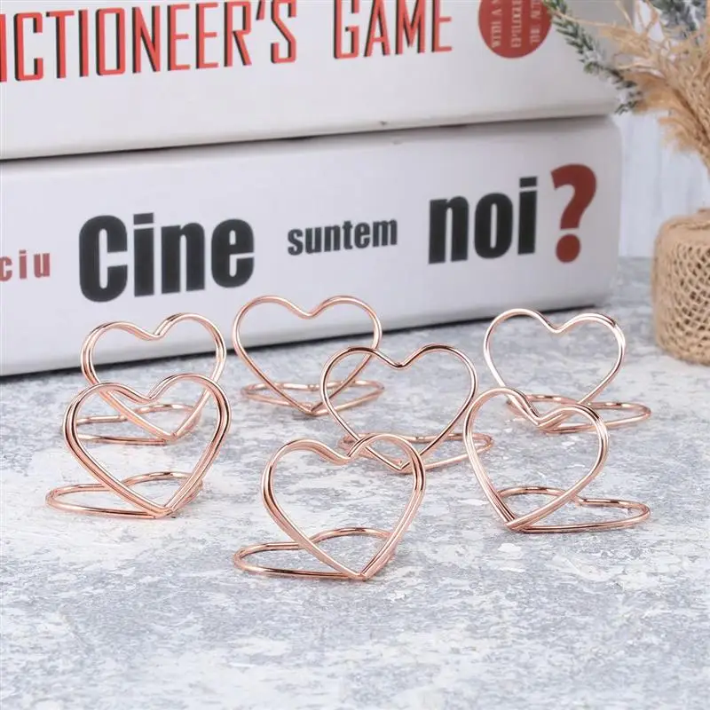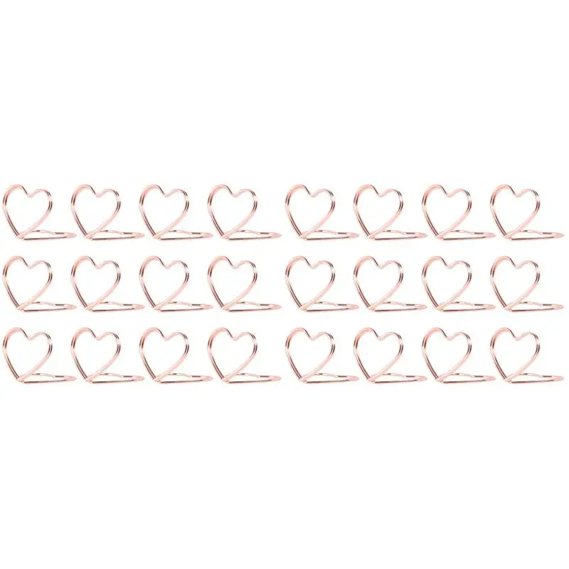 24 шт., розовое золото, металлическая памятная фотография, держатель для стола, двойной слой, сердце, дизайн, зажимы для нот, подставка для свадебного банкета