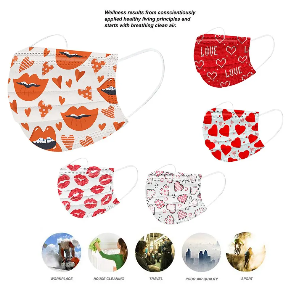 Дизайн Маски ко Дню Святого Валентина для взрослых мужчин и женщин и мужчин трехслойная защита анти-туман Пылезащитная одноразовая маска для лица Особенности: