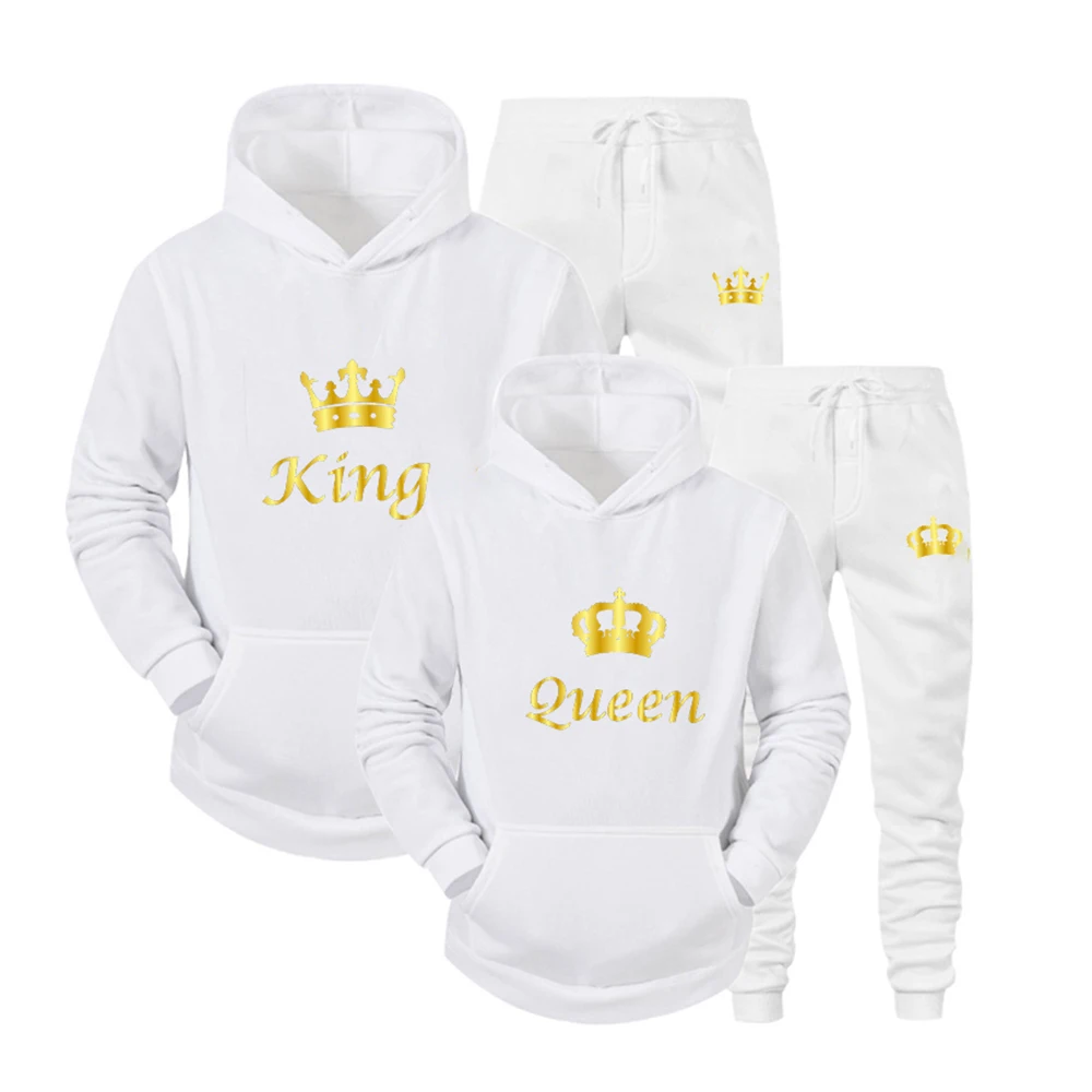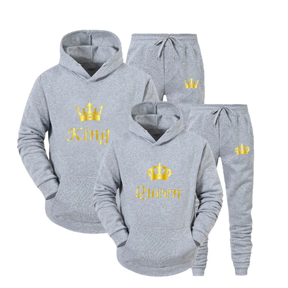 Комплект спортивной одежды KING или QUEEN для пары, Модный женский комплект с принтом, пуловер унисекс, толстовки и спортивные брюки