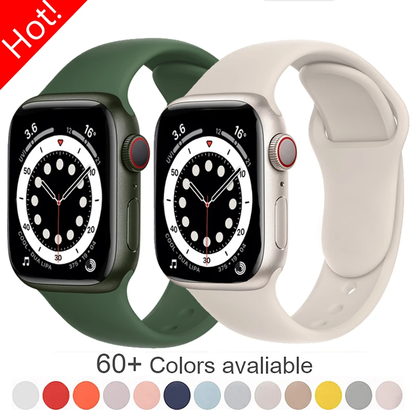 Ремешок силиконовый спортивный для Apple watch, браслет для iWatch 40 мм 38 мм 41 мм correa series 6 5 3 SE 7, 44 мм 45 мм 42 мм