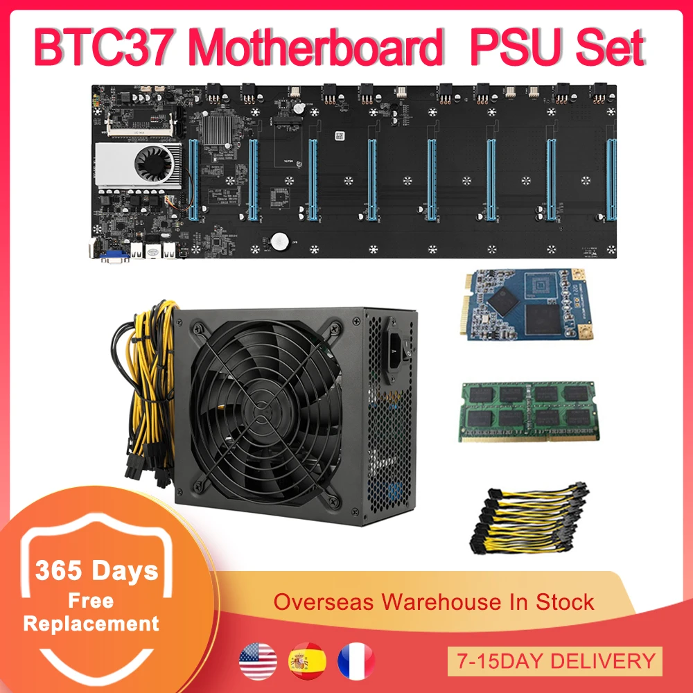 Набор шасси материнской платы BTC S37 для 8 графических карт 8 ГБ DDR3 128 Гб SSD кабель питания 2000 Вт блок питания ETH Биткоин Майнер