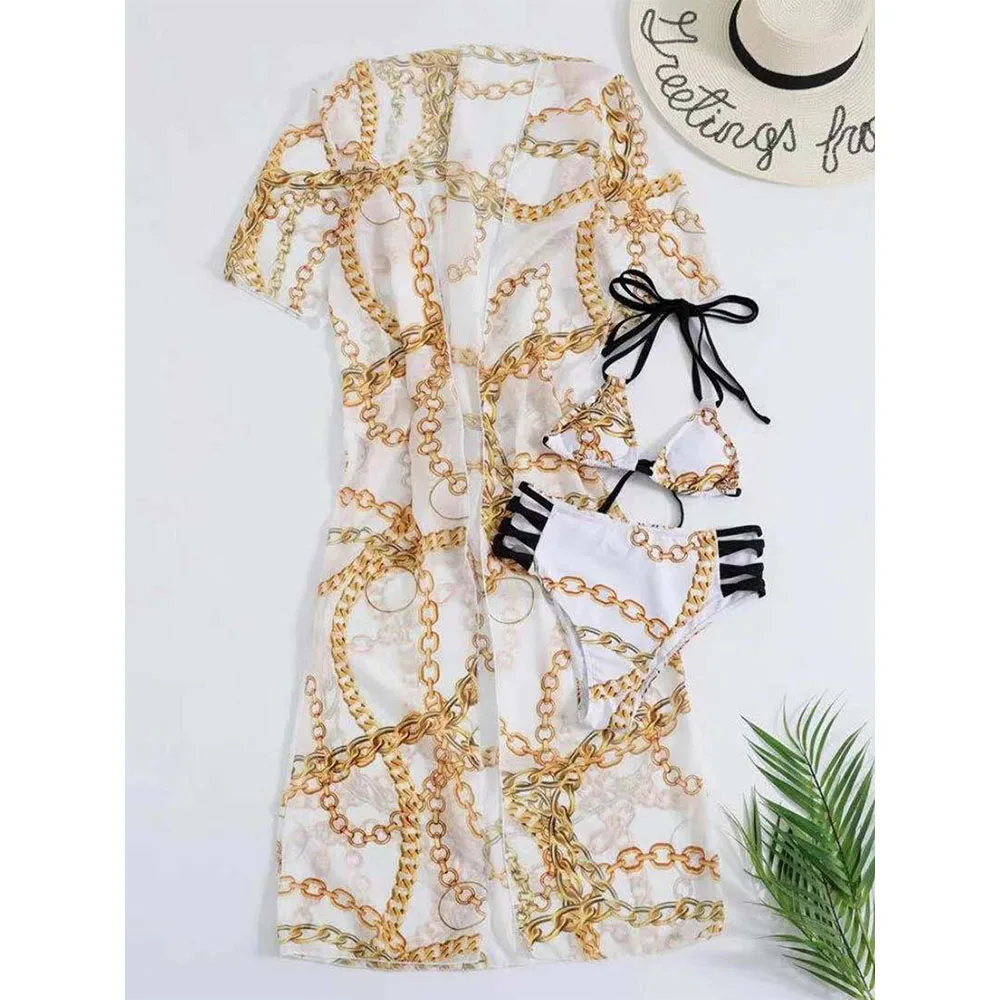 Новое поступление 2022, женская накидка с золотой цепочкой, купальн...