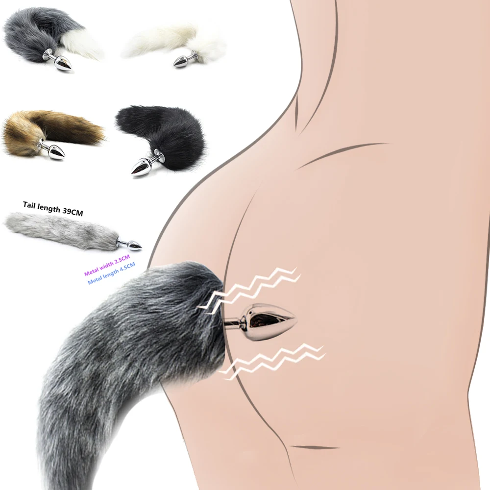 Металлическая Анальная пробка с лисьим хвостом, Женская Анальная пробка для точки G, 18 дюймов, для взрослых, игр, секс-игрушки для мужчин, женщин, мужчин, геев, эротические анальные бусины