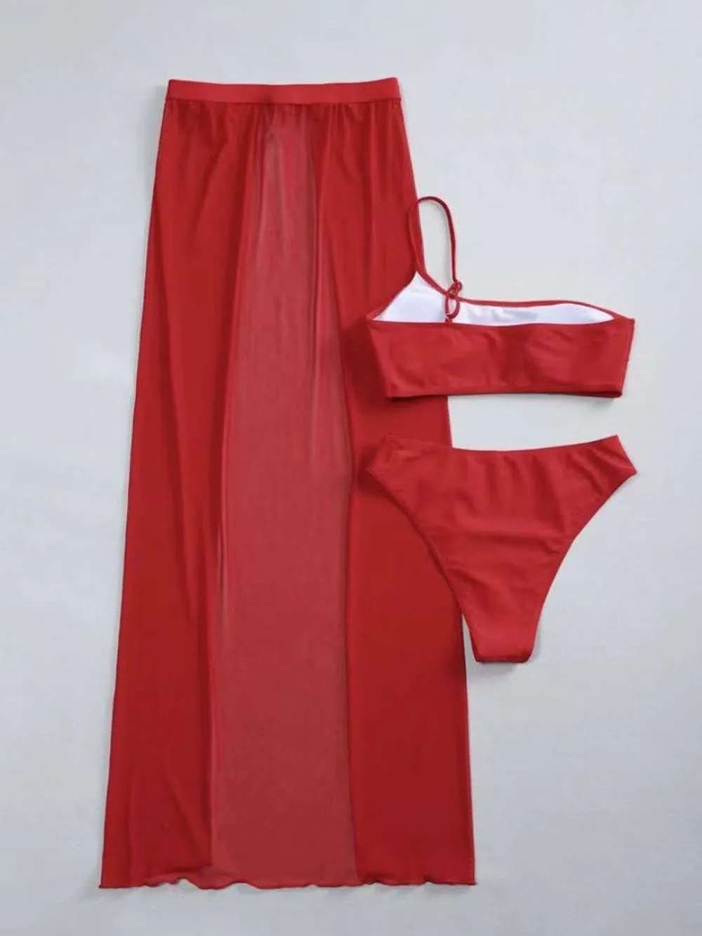 Красный бикини с запахом, женская накидка, сексуальный купальник, Пляжное длинное платье, купальный костюм, летняя пляжная одежда, Женская туника, сетчатая рубашка 2022