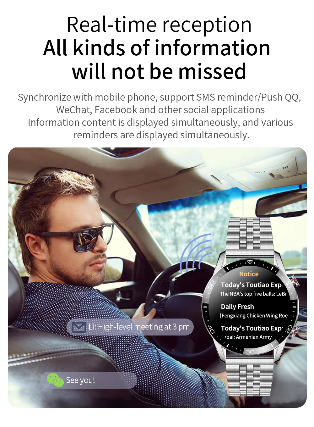 Мужские Водонепроницаемые Смарт-часы из нержавеющей стали с функцией Bluetooth