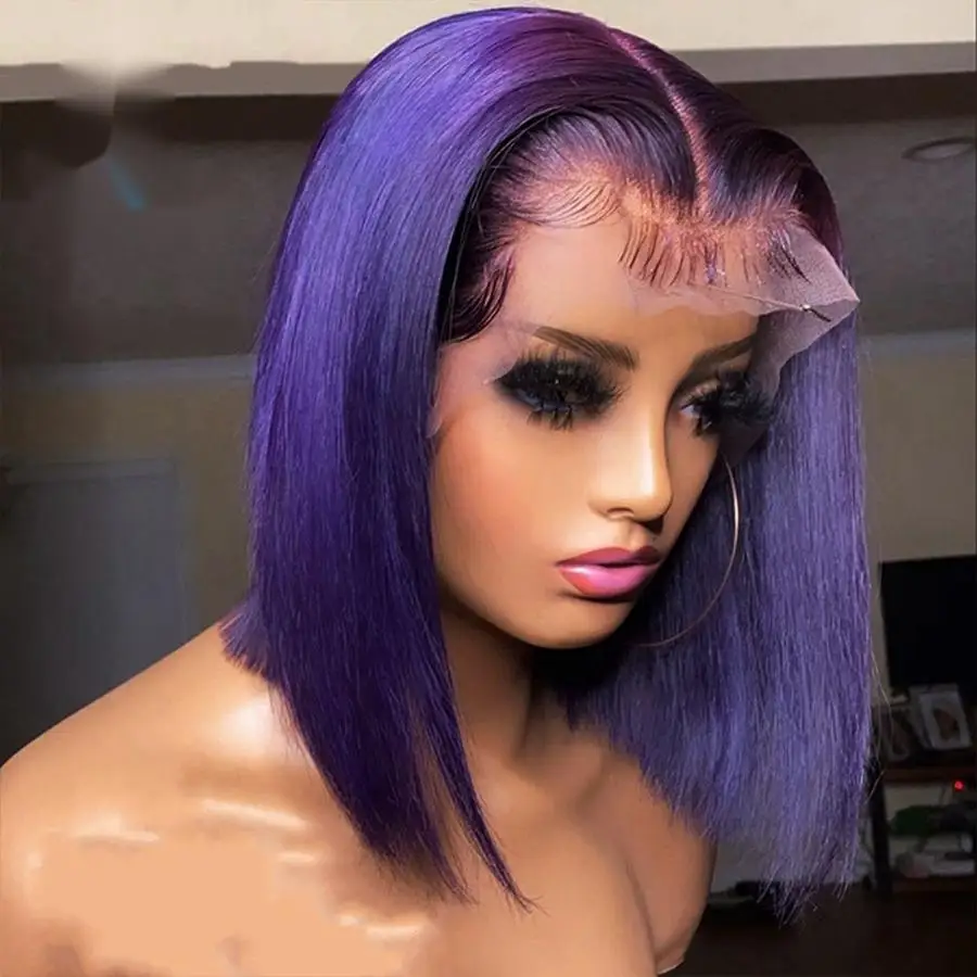 Бразильские волосы, Фиолетовый парик из человеческих волос без повреждений, прозрачные прямые волосы, парик из человеческих волос, Короткие искусственные волосы, парики из человеческих волос